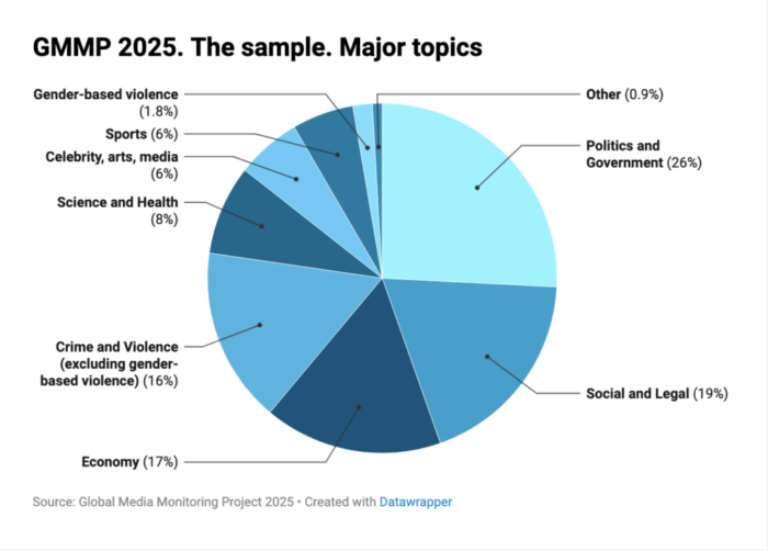 Nel complesso, il ritmo lento dei cambiamenti tra il 2010 e il 2025 suggerisce che si è verificata una certa trasformazione strutturale nelle dimensioni misurate dal GMMP, ma che i progressi hanno raggiunto un punto morto. Nelle condizioni attuali, è improbabile che si verifichino cambiamenti significativi verso la parità di genere.
