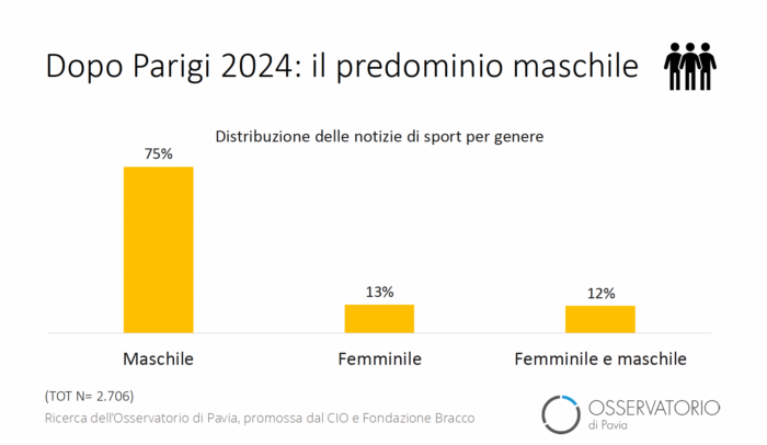 Azzalini ha presentato i dati inediti sull’informazione sportiva nei principali TG italiani nei dodici mesi successivi ai Giochi di Parigi 2024. Dalla ricerca emerge che mentre il monitoraggio dei TG italiani ha rilevato una copertura equilibrata tra uomini e donne durante le Olimpiadi francesi (51% le notizie dedicate a discipline femminile e 49% le atlete news maker), nei mesi successivi (dal 1° ottobre 2024 fino al 30 settembre 2025) la visibilità delle donne nello sport è drasticamente diminuita: solo il 25% delle notizie sportive riguarda anche le atlete. Il calcio domina la scena (40% di notizie), quasi esclusivamente al maschile (98%), mentre lo sci, terza disciplina in ordine di attenzione con copertura del 7%, dà più visibilità alle donne, con il 76% di notizie dedicate esclusivamente a gare o atlete femminili, più l’8% di notizie che coprono competizioni di entrambi i generi. Rispetto alle Olimpiadi, la copertura mediatica delle Paralimpiadi di Parigi 2024 è significativamente inferiore (sole 54 notizie dedicate a fronte delle 476 riservate alle Olimpiadi), evidenziando uno squilibrio nell’attenzione mediatica verso lo sport paralimpico e le sue protagoniste.